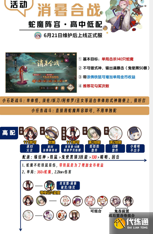阴阳师这个游戏又到了一年一度的打蛇活动啦,那么本次的阴阳师消暑合战怎么玩呢,本期小编给大家带来的是阴阳师消暑合战阵容推荐,感兴趣的小伙伴一起来看看吧。