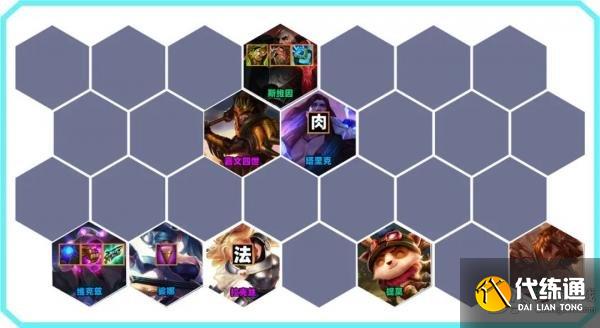 目前T1中的法系阵容,较为克制后排阵容。这个阵容,不是在7人口追3星,除非有转职,因为他全2星强度很高,能直接上8。上8后D出2星拉克丝和皇子,是非常大的提升。缺点是前排薄弱,且很依赖6级D卡,想吃鸡很依赖三星维克兹和三星乌鸦。