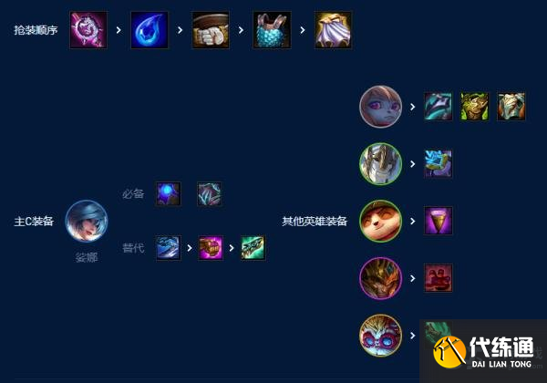 装备琴女的蓝buff可以替换青龙刀。鬼书必备第三件可以不给。等德玛给的光明装备就可以。其次就是波比的前排肉装一定要拿。