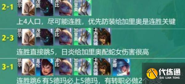 3-1连胜升6人口,有5德玛西亚羁绊必上,有转职可做;