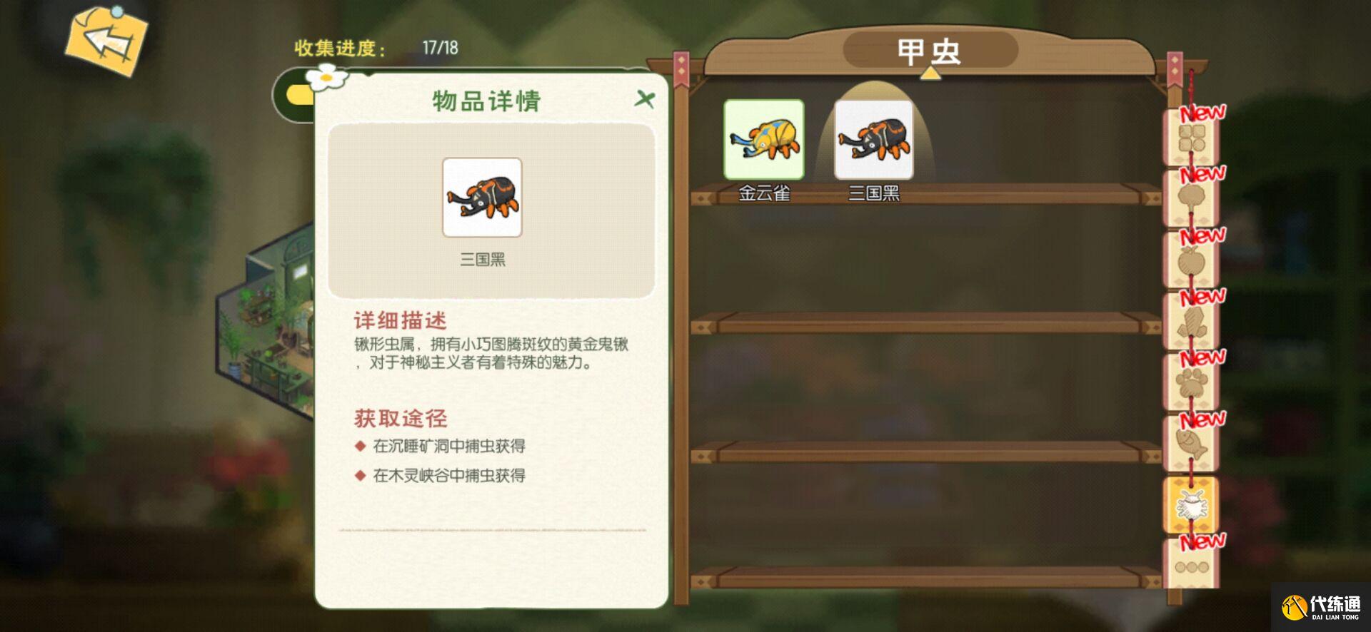 如果玩家们完成了甲虫的故事,我们可以看到拓叔和奶奶是所有NPC中最强大的角色。如果玩家没有紫色甲虫,很难通过测试。如果你注意肝甲虫插图书籍,你可以在大约4小时内完成所有插图书籍的收集。目前,稀有度分为紫色>蓝色>绿色>白色。紫色基本上有100+的攻击力,而白色的属性,当你看到紫色的昆虫,你会觉得它只是纯粹的收藏和销售。