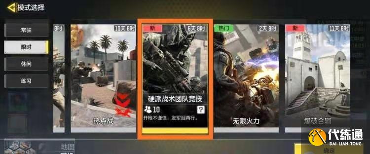 硬派团竞不同于常规的模式,硬派团竞给予了玩家更多的条件限制,比如该模式玩家的生命值更低并且没办法回血,地图上无法获取敌人的位置,没有死亡回放,还有队友伤害等等。而我们要做的就是利用被动技能来获得高分拿下奖励。此模式的地图也被缩减为8张,包括核弹小镇和坠机之地等,所以玩家对地图还是相对熟悉的。