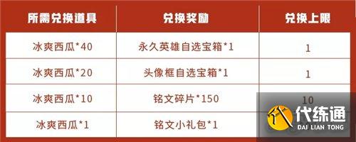 浪漫初夏来临,全新兑换商店上线!玩家可以在5月7日-6月7日收集冰爽西瓜,即可兑换永久英雄自选宝箱等奖励!