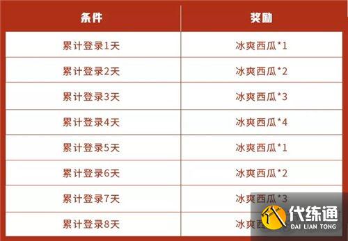 活动期间累计登录1-8日,总共可获得冰爽西瓜*20;