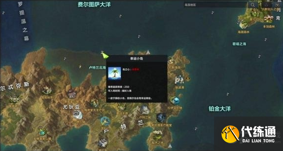 6、幸运小岛位于卢特兰北岛上部,上岛后视角往后,树杈中间有个发光点,点击调查即可。