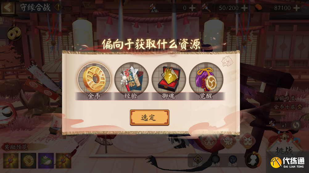 4.可选金币/经验/御魂/觉醒4种资源