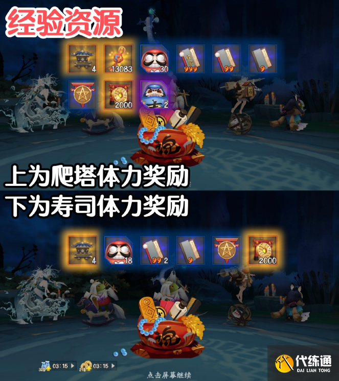 5.不论哪种资源,爬塔积分都一致;爬塔体力/寿司体力都是每局4花车经验,整个活动上限800点经验