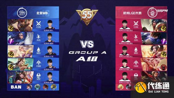 2021年KPL春季赛常规赛第二轮倒数第二个比赛日第三场场比赛由杭州LGD大鹅对阵北京WB,这是一场A组的比赛,双方位列A组后两名,需要用一场胜利脱离换位区。最终,北京WB三比二战胜杭州LGD大鹅,虽然取胜,北京WB仍然以小分劣势位列A组倒数第一,将进行换位赛。