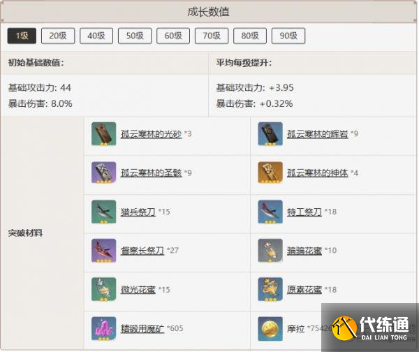 成长数值一览