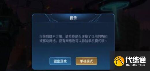 3、把网络关闭后我们再开启游戏,然后会显示当前网络不可用让玩家退出游戏或选择进入单机模式;