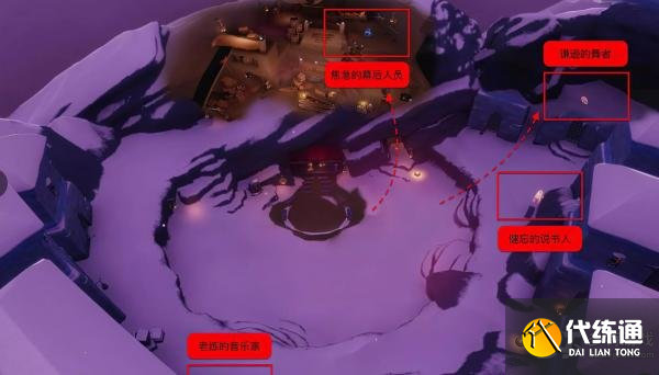 前往 [圆梦村剧场] 重温剧情任务四 任意选择三位先祖牵手即可