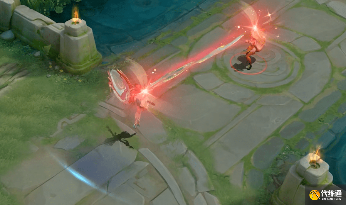 二技能的释放也是以香炉为媒介,最主要的是释放出去的法球,它有一个很长的飘带,当然了,你也可以认为它是释放技能的轨迹。