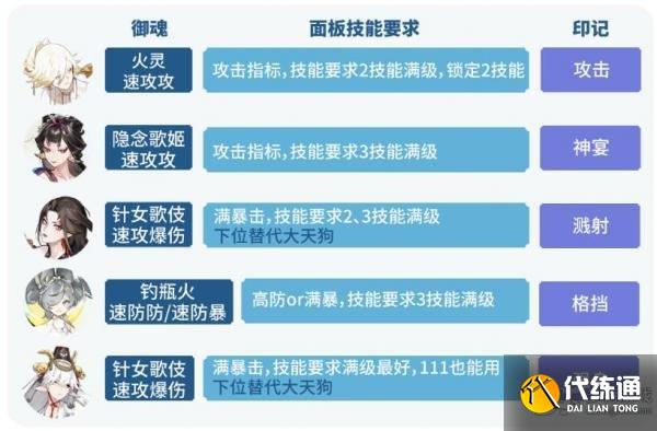 4、御魂练度不够的玩家:可以考虑自带试炼式神,让自己的式神携带【爆伤】【蓄势】充当印记工具人。