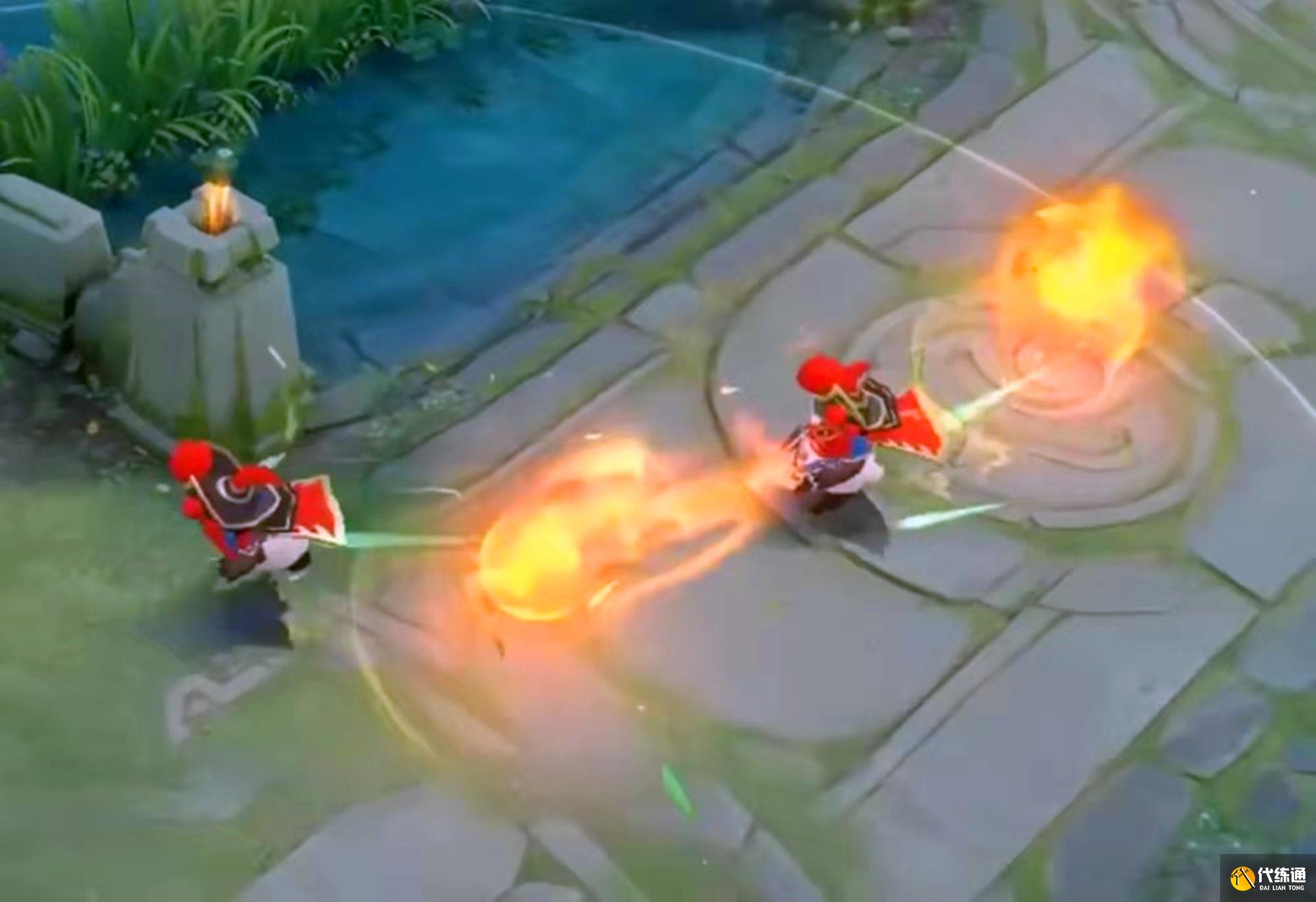 二技能的特效比较经典,运用了川剧经典的变脸喷火,胖达荣荣从嘴里吐出一个火球,火球扔出后又会回到胖达荣荣的手中,火球回到手中后,手里会出现一个锅,释放技能二段,可以把锅扔出去,特效非常好看。