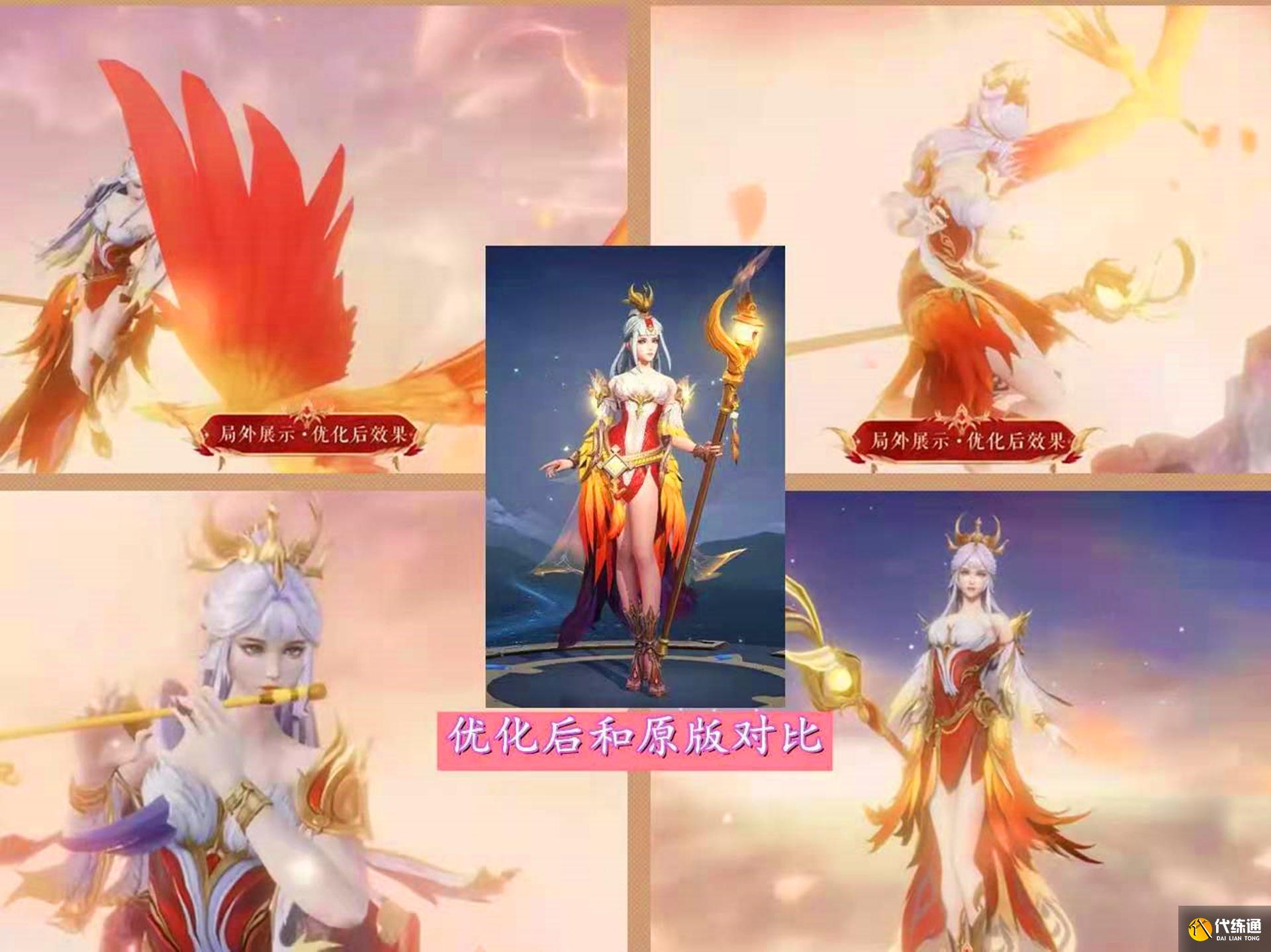 游戏官方已经公布了凤凰于飞皮肤的优化效果,主要是优化了皮肤的出场动画、海报、建模。优化效果最让人满意的就是出场动画,其和凤求凰的出场动画做到了一致,有了传说的品质。