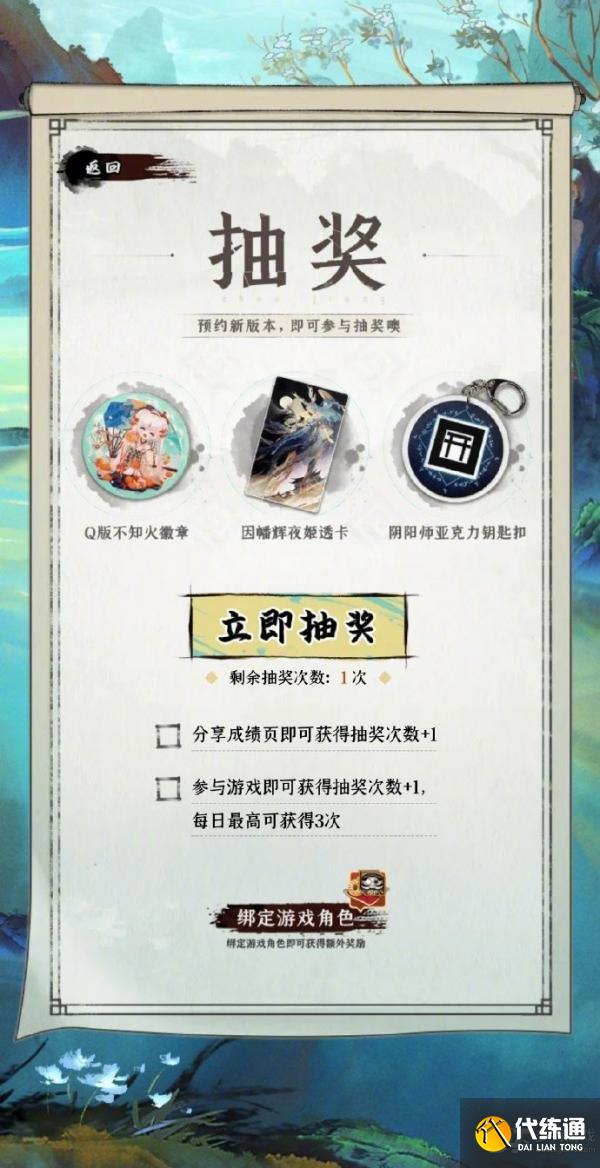 ※活动期间,大人可跟随页面引导预约新区【乾坤行】,预约成功后即可参与抽奖。每日参与玩法、分享页面、邀请好友挑战均可获得1次抽奖机会,每天共可获得3次抽奖机会,次数上限每日0时刷新。