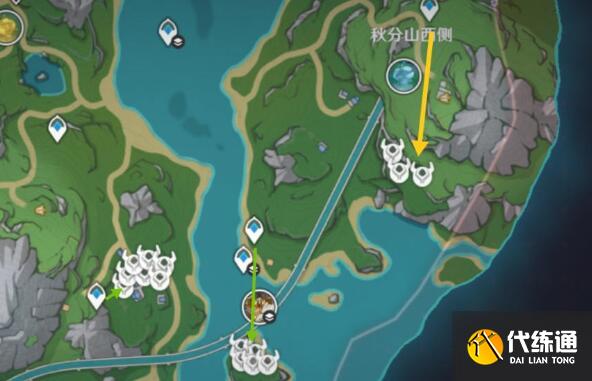 第5处采集点,秋分山西侧和大螃蟹附近的传送锚点,路线如下(都是地上的锚点,别走错了)