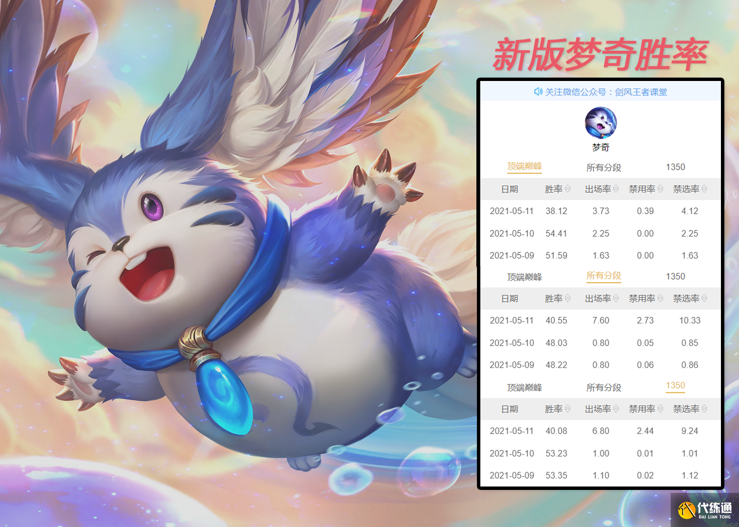 今天新梦奇在高、中、低三个分段(顶端局、1350以上、全分段)的数据已经出炉了,本文就借着数据跟大家探讨一下梦奇的强度和玩法。