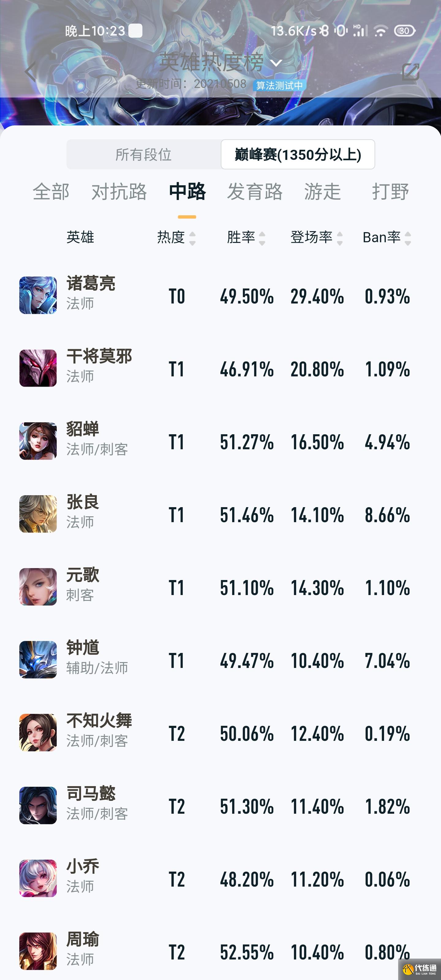 在普通排位中依旧是妲己和安琪拉这两个操作较为简单的法师比较受欢迎,但在巅峰赛里面确实容错率较低导致登场率不高。