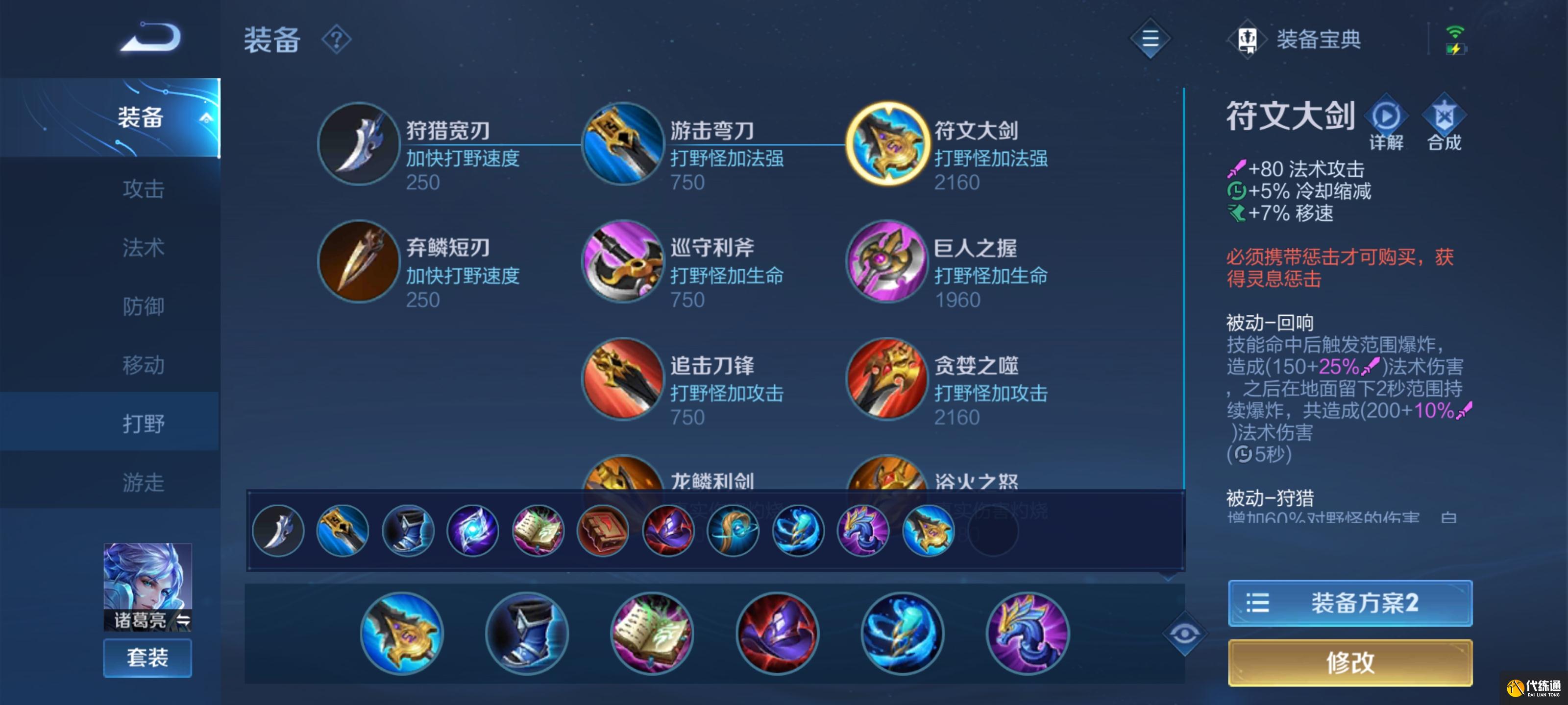 现在诸葛亮一般有两种打法,第一种就是正常的中单诸葛,还有一种就是打野诸葛,但中单诸葛依旧是主流,我们这里主要说一下打野诸葛,这个赛季由于野怪法抗的降低导致法师的刷野效率快了不少,而且蓝色打野刀与新装备魔道之石等我被动是可以叠加的,同时做出来后刷野效率会变得更快。