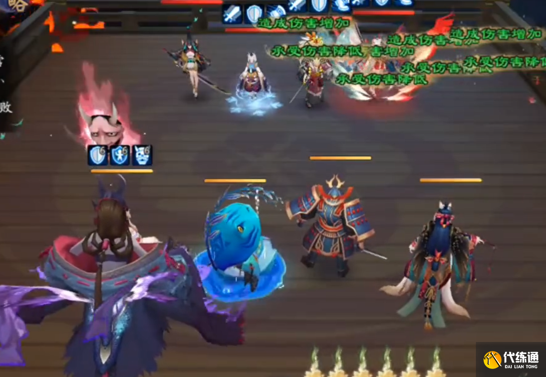 椒图三技能连线,兵俑普攻对面山风,御怨般若二技能开启封印,玉藻前大招输出,兵俑/椒图普攻清场。