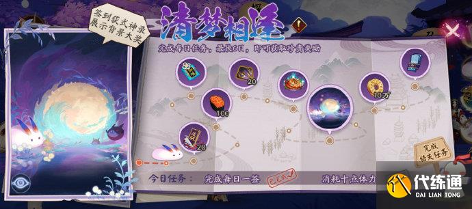 ※大人每天登录游戏,完成今日任务达到指定进度时,即可对应解锁获得体力、大蛇的逆鳞、皮肤券、神秘的符咒以及式神录展示背景·繁影流珠等奖励。
