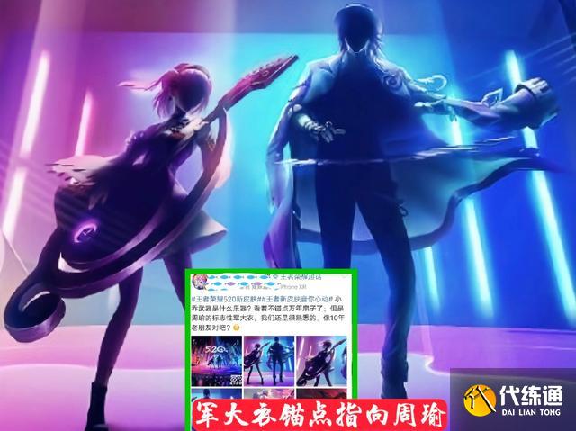 小乔周瑜520皮肤官宣,手拿吉他摇滚风,红蓝特效就值1999点券
