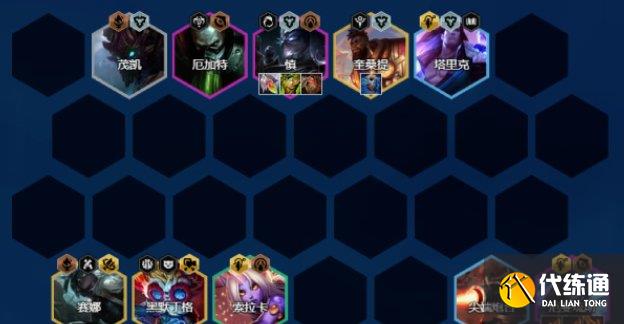 阵容组成茂凯、索拉卡、塔里克、厄斐琉斯(月男)、慎、厄加特、奎桑提、黑默丁格、赛娜;带吸血鬼走连败将血量转化为战力,而且连败经济比较好,低血量选秀会优先出来,装备也不会烂。带吸血鬼后期差不多人人半件狂徒,配合堡垒巨神峰特别肉,很容易拖到飞升时间。