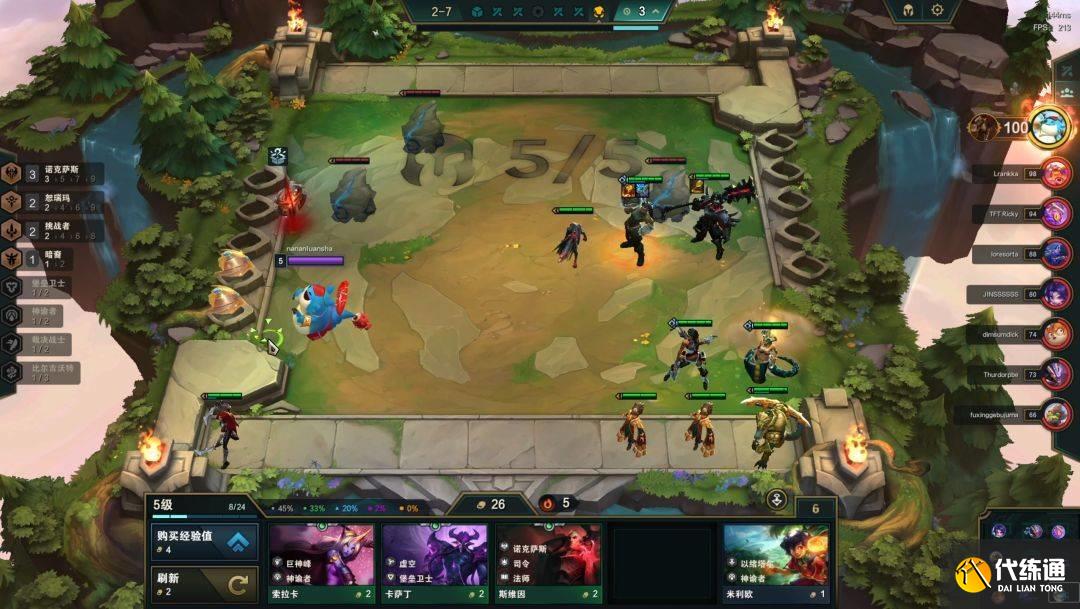 2-1拉4,2-5拉5,用3诺克萨斯搭挑战、恕瑞玛过渡,尽量走连胜;