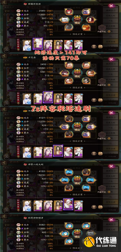 3、难民级别:攻攻爆伤荒/歌/狂/海/心(70暴)各种御魂都可用+4白蛋即可。