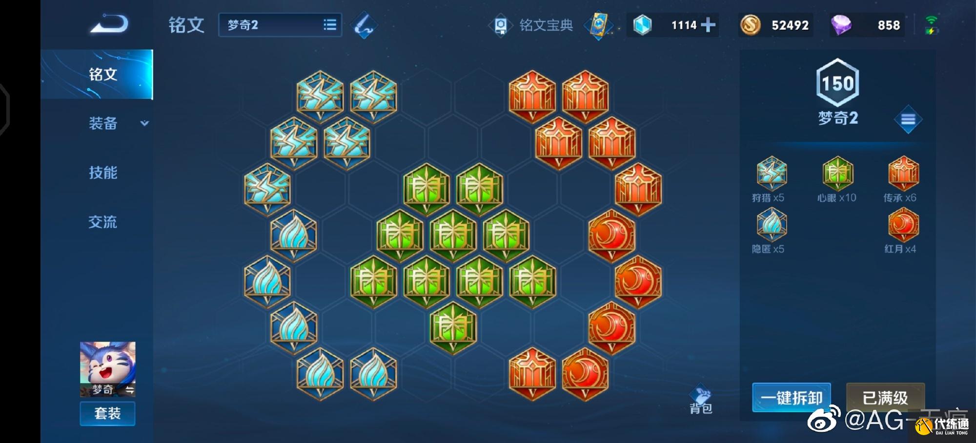 铭文:5狩猎5夺萃10鹰眼7红月3无双