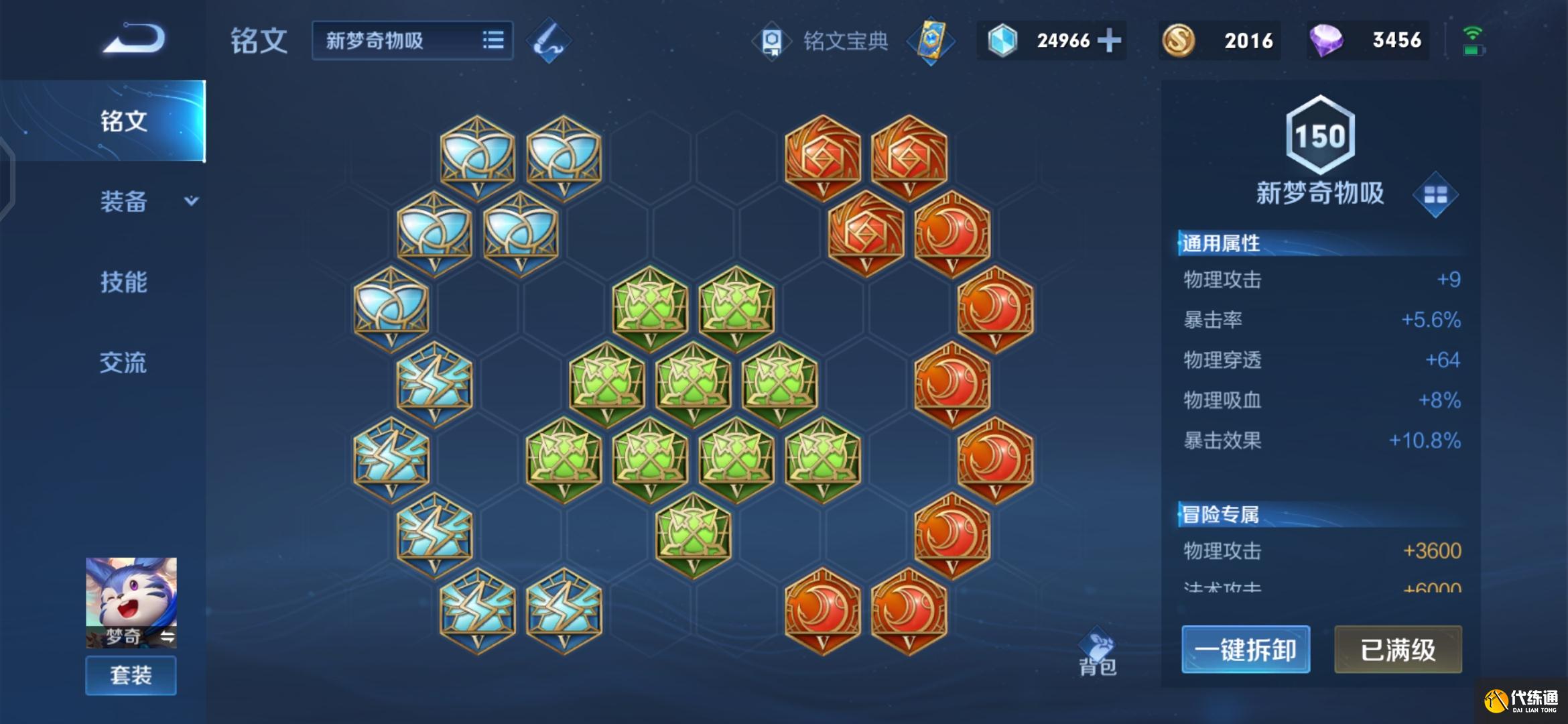 铭文2提供的物理防御可以有效缓解对线时低质量时坦度不足的问题,前期一技能护盾伤害的法术吸血对2~3个单位(包括兵线、野怪、英雄)触发即可超过铭文1下四次普攻的物理吸血,后期的物法混吸效果甚至高于纯物吸。这套出装的梦奇不是追求极致的瞬时输出,而是保证自身状态的情况下持续输出(极致刮痧),也同时通过攻速刷盾扛伤。