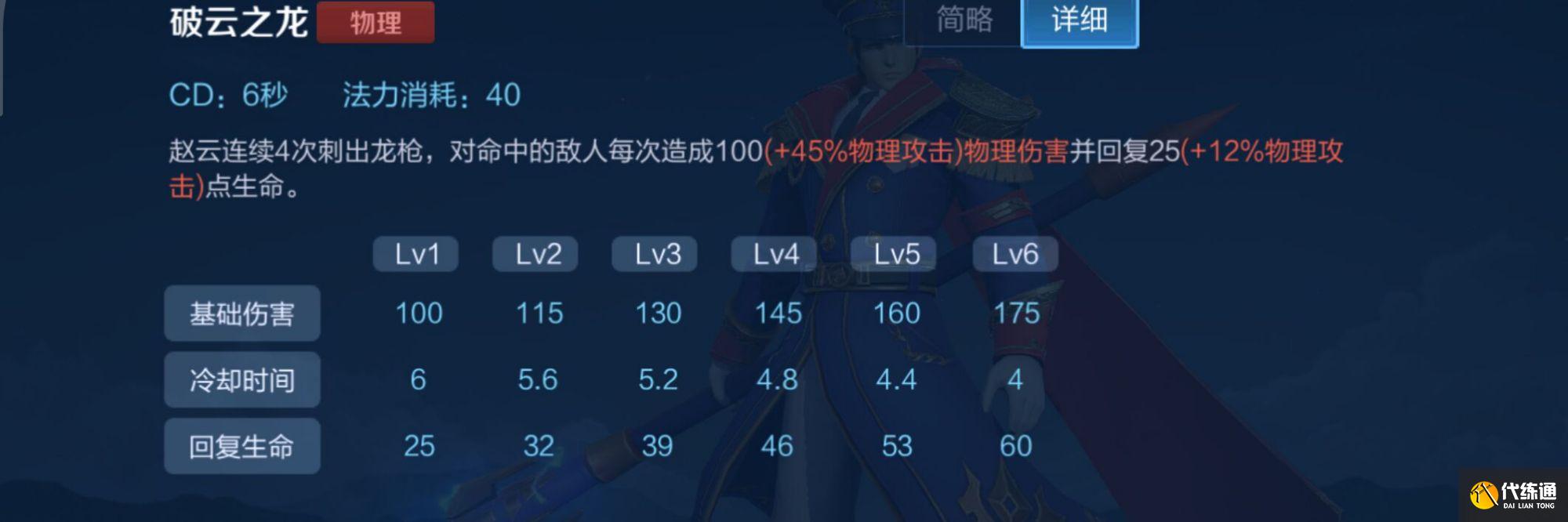 二技能是向指定方向刺出四枪造成伤害并回血,这个技能是赵云保证续航的主要技能,而且要注意的是二技能是可以主动打断的,在释放二技能的期间如果拖动移动轮盘和使用技能是会被打断的,在刷野的过程中要保证二技能释放完整来保证续航。