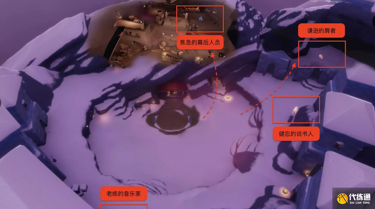 前往 [圆梦村剧场] 重温剧情任务四 任意选择三位先祖牵手即可