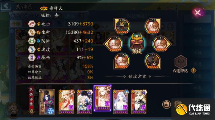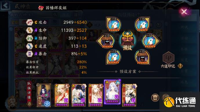 四速因幡 火灵 攻攻爆(指标攻击,设置爆伤低于sp面,例:280爆伤后堆攻击)