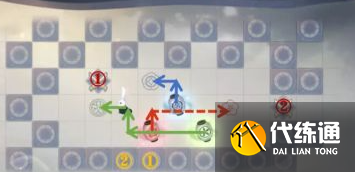 9月30日解锁的第四关翩舞焰碟,红色灯笼需要向上一格,向右三格,蓝色灯笼需要向上一格走,向左一格,绿色灯笼需要向左三格,向上一格,向左一格。