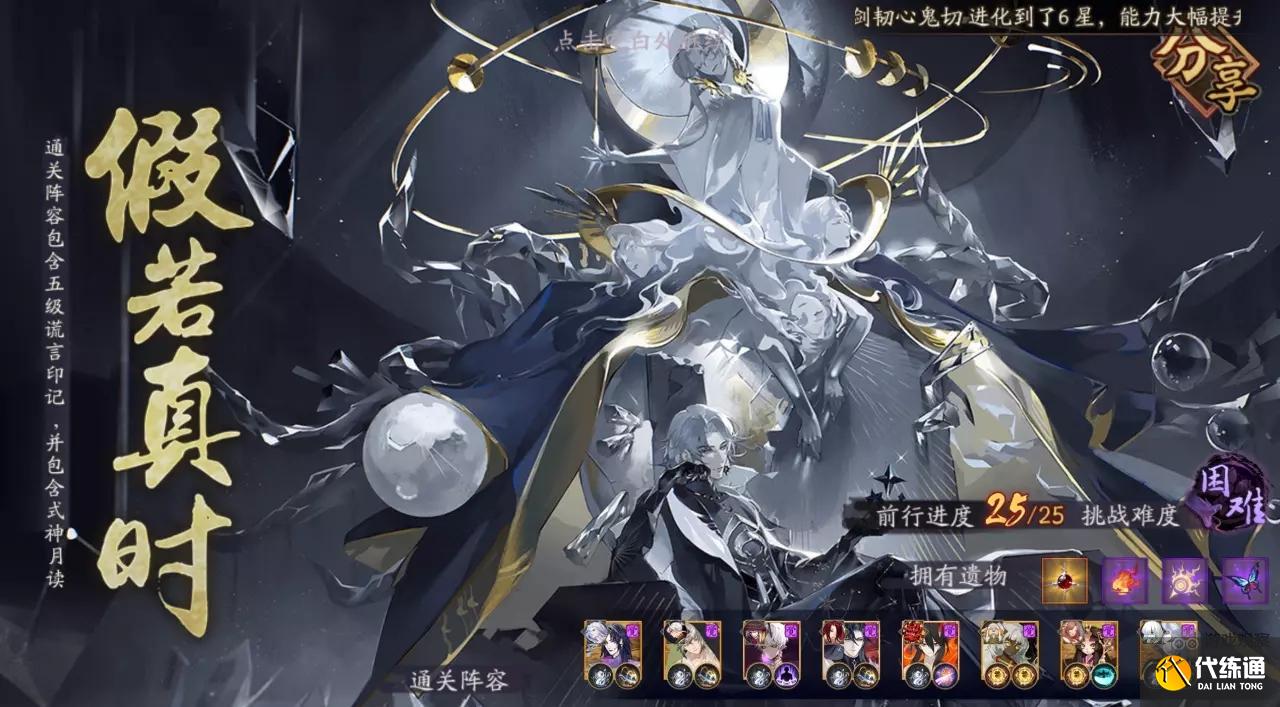 2、最快的是5谎言(多拿多段输出)+天照神格(遗物)+毁灭神格(遗物),13分钟内可拿下困难模式。