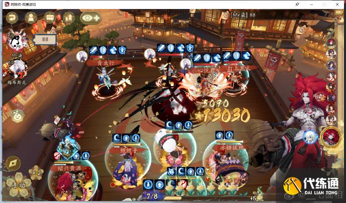 ②假设左边山童+面灵气都走过了(是不是听起来像最坏的劣势开?)其实不然!右边竹子ai很傻,此时单体输出的酒吞不管怎么样只会吃一次反击还能顺便叠自己的豆子,黑童子因为血量会被虫师不断地抬起来,本身输出期望就不高,加上鲤鱼的厚盾,基本就是在给酒吞刮痧帮忙叠豆子。