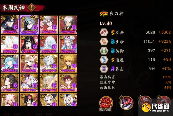 控制:sp鬼童丸、兵俑、sp雪女、稻荷神、御馔津、影鳄