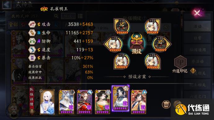 二速清姬 雪幽魂 速命暴/攻,指标命中 70暴或堆攻击(别超孔雀)