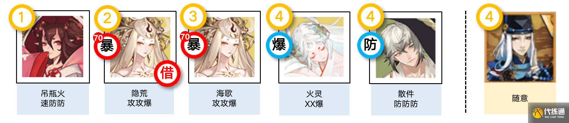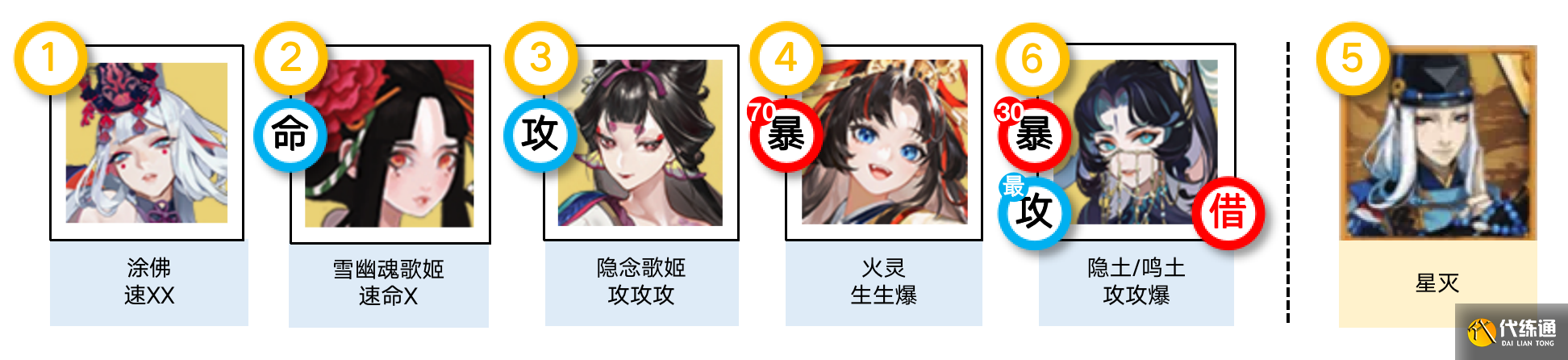 【备注】借一个天照,2号天照可以换成阿修罗,桃花可以换成铁鼠/薰,伤害差点就把不见岳换成涂佛前置普攻增伤。如果还是配不出高配阵容,建议不要刷短线,毕竟效率不够还不如刷长线多点首领御魂收益,如果没有时间可以直接委派式神/绘制法阵
