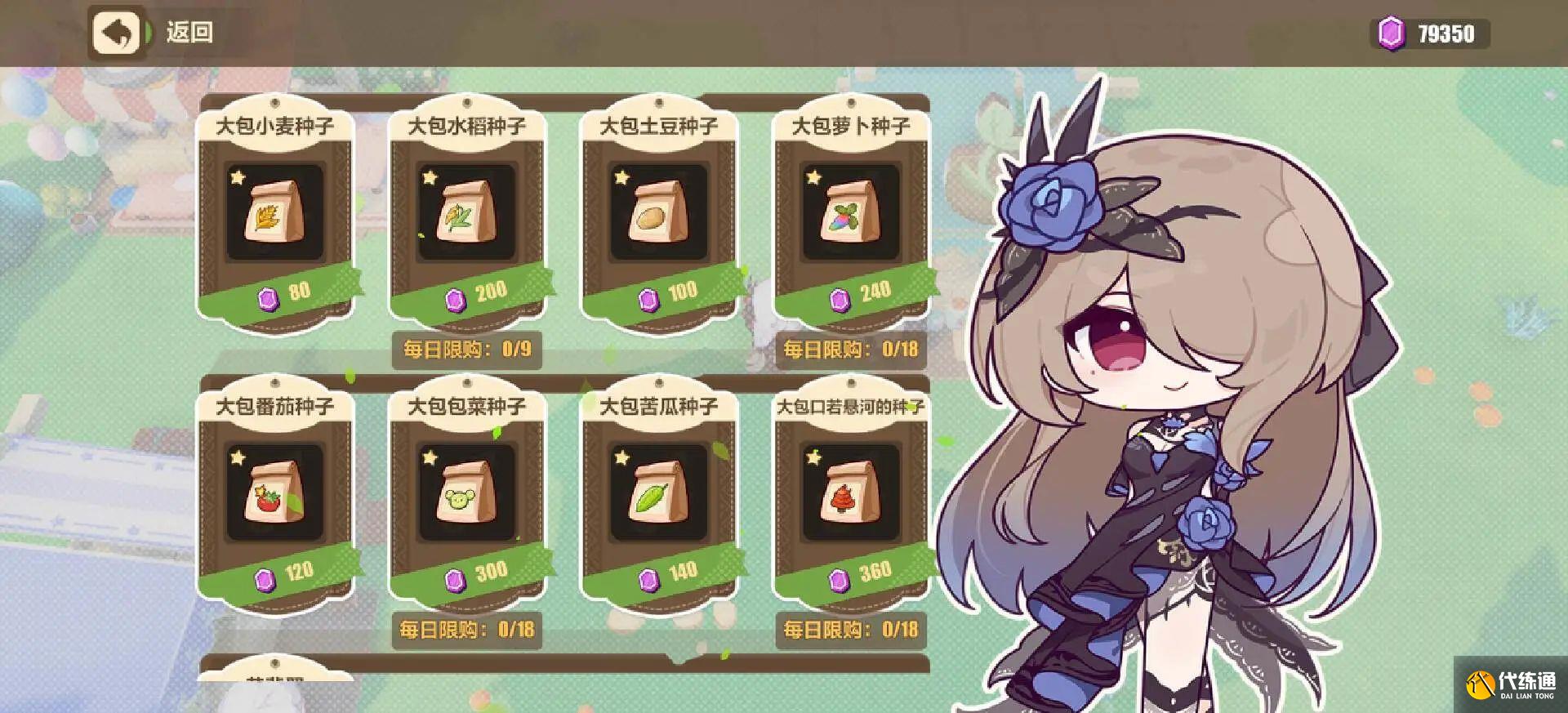 种子一般在商店购买获得,大体可分为两类:【限购】种子与【非限购】种子。前者成熟时间长,单价高,适合每天种一轮,作为稳定收入来源。后者成熟速度快,但单价低,相应的体力的性价比也会略低,比较适合在桃园币仅差一点点达到目标,而体力还有富余时应急。