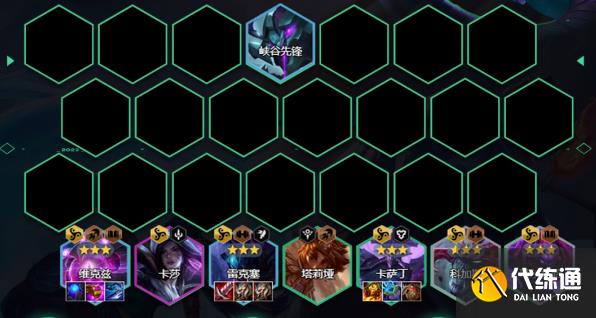 阵容的核心就是虚空单位的星级能够给峡谷先锋的法强和生命值,因此高星级虚空羁绊能够给提供质量的峡谷先锋,10级峡谷等级+6虚空峡谷先锋就能够有3000生命值,一个技能就能够打600的技能伤害。
