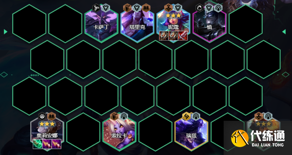 1、阵容组成:发条、米莉亚、索拉卡、塔里克、妮蔻、慎、卡萨丁/奎桑提、瑞兹