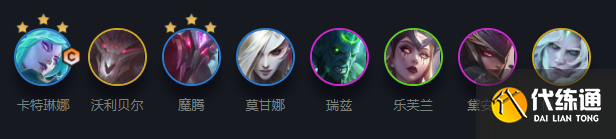 卡特的阵容主要是5刺客,3破败军团为主,另外,还外挂了2秘术,在对抗当前法系阵容时有非常不错的效果。具体构成是“卡特琳娜,沃利贝尔,魔腾,莫甘娜,瑞兹,妖姬,皎月,破败之王。