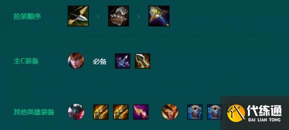 装备非常苛刻,一件错不了,所以英雄之力必选卡牌;第一优先级:先变主C奎因最后的轻语、无尽之刃;第二优先级:嘉文四世的圣盾使契约、石像鬼板甲和莫德凯撒的第一把疾射火炮一起变;第三优先级:再然后变嘉文四世的第三件圣盾使契约以及莫德凯撒的第二把疾射火炮或纳什之牙