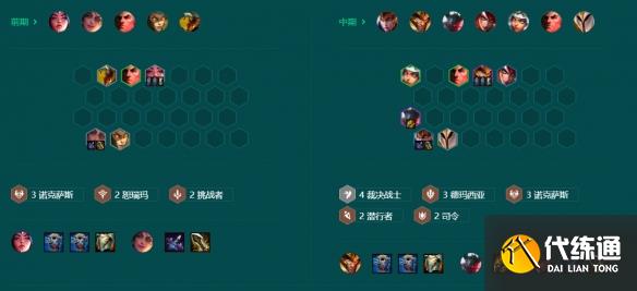 2阶段:过渡随意,但手里得留裁决、德玛的体系牌;3阶段:3-2跳6,打工队还行就继续运营,打工队炸裂的,小D下1星奎因,凑个3德玛2堡垒,体系牌到2可以直接挂上去