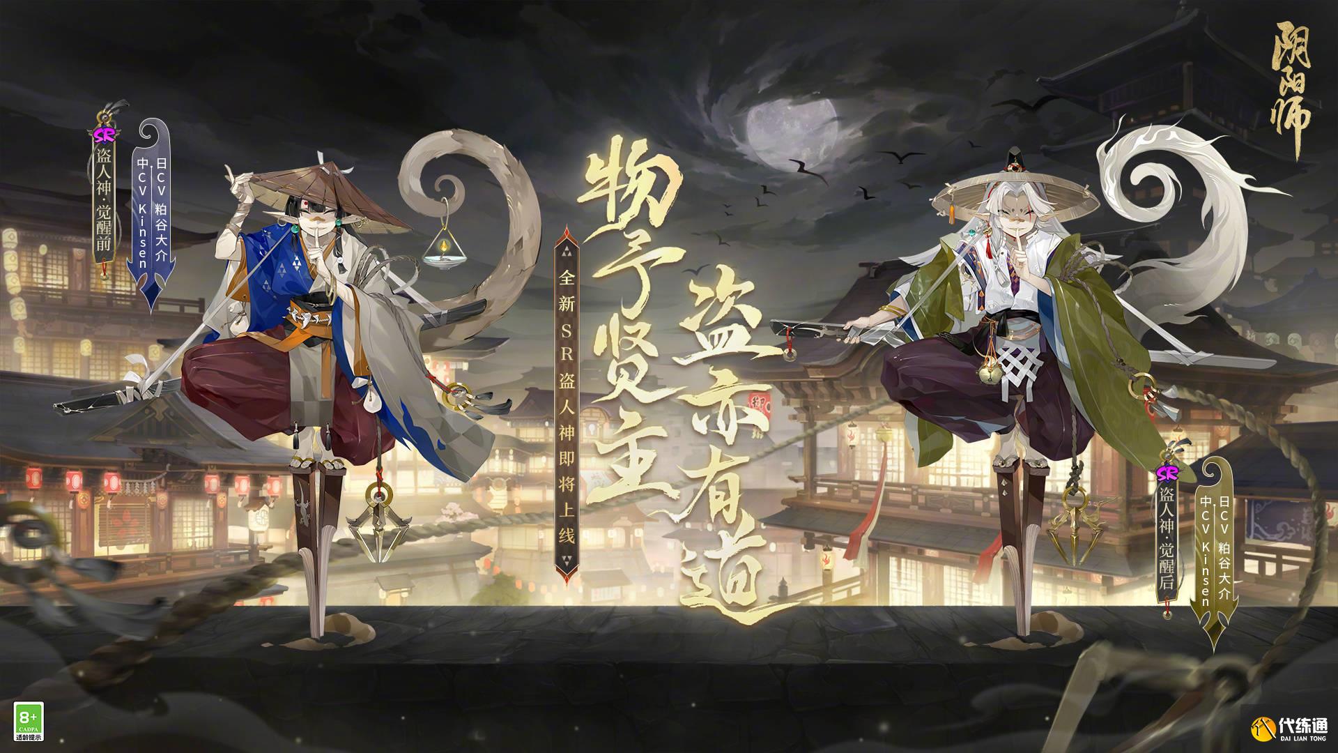 物予贤主,盗亦有道。全新SR阶式神盗人神(CV:粕谷大介(日)/kinsen(中))降临平安京!