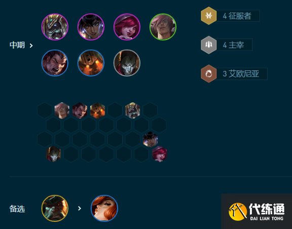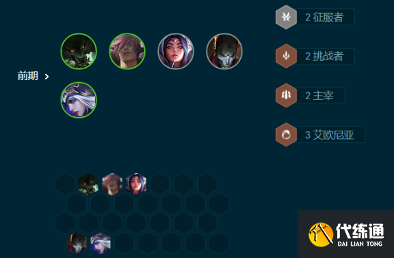 前期过渡以三艾欧尼亚和征服者为主的羁绊,寒冰带输出装备,刀妹带肉装
