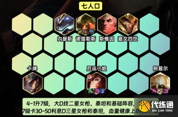 之后在7级卡30-50的利息D三星女枪和泰坦,前期连胜经济和血量都比较健康的话可以升8级再D三星;
